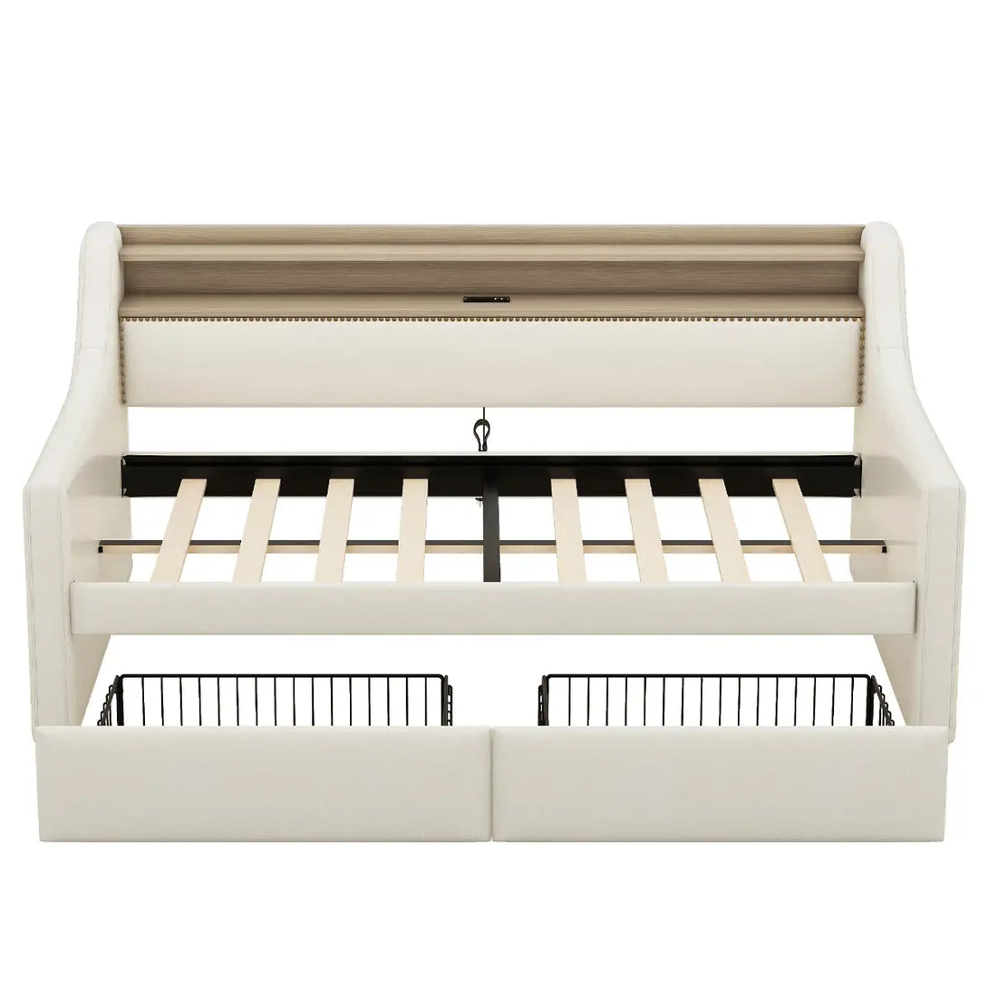 Twin Size Daybed with Storage Drawers, Charging Station