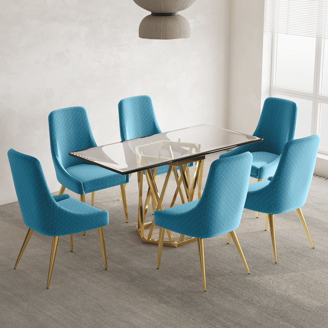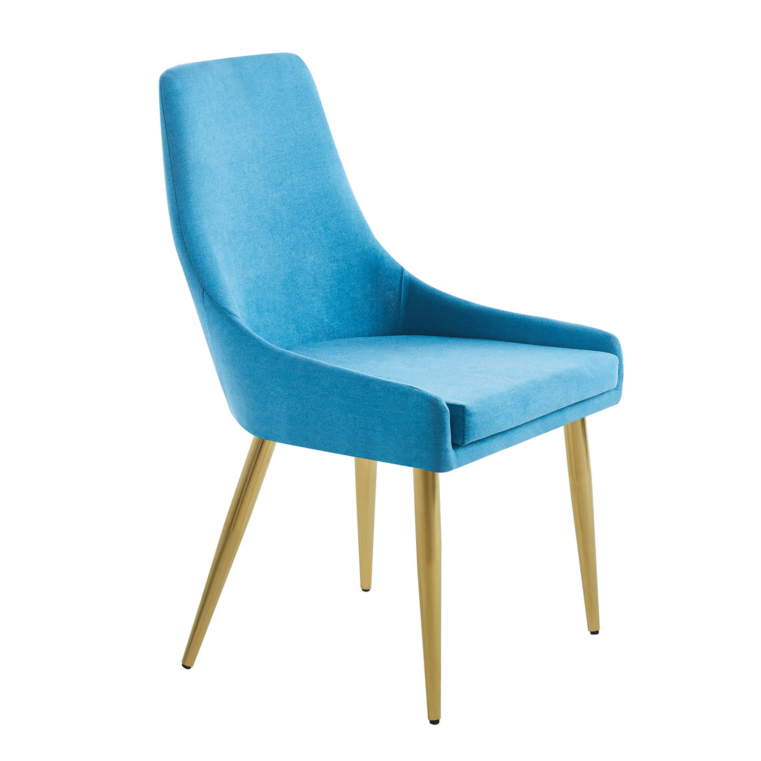 This modern chair combines comfort and style with a sleek black fabric seat and sturdy metal legs. The fabric offers a plush seating experience, while the metallic sheen adds a fashionable touch. Perfect for dining rooms, offices, or living spaces, its durable design ensures long-lasting use. Easy to maintain—simply wipe with a soft cloth.