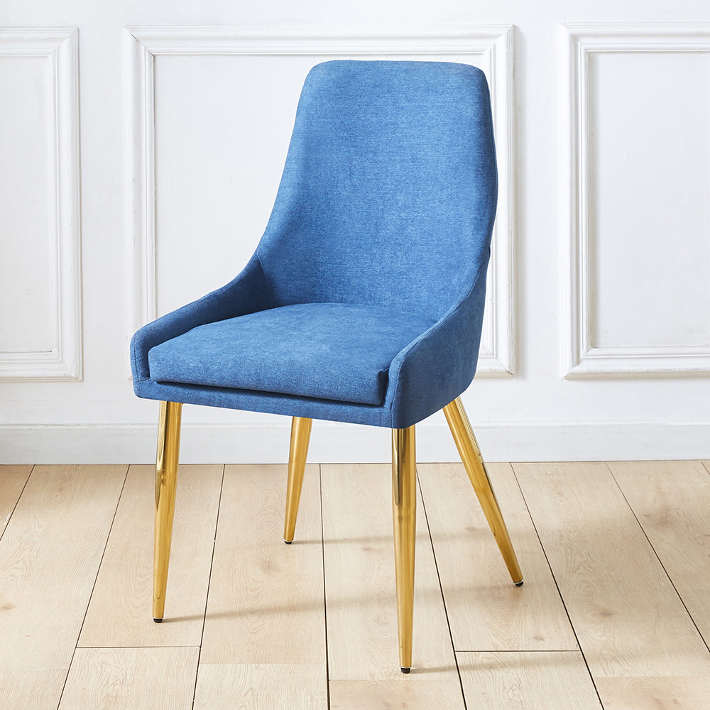 This modern chair combines comfort and style with a sleek black fabric seat and sturdy metal legs. The fabric offers a plush seating experience, while the metallic sheen adds a fashionable touch. Perfect for dining rooms, offices, or living spaces, its durable design ensures long-lasting use. Easy to maintain—simply wipe with a soft cloth.