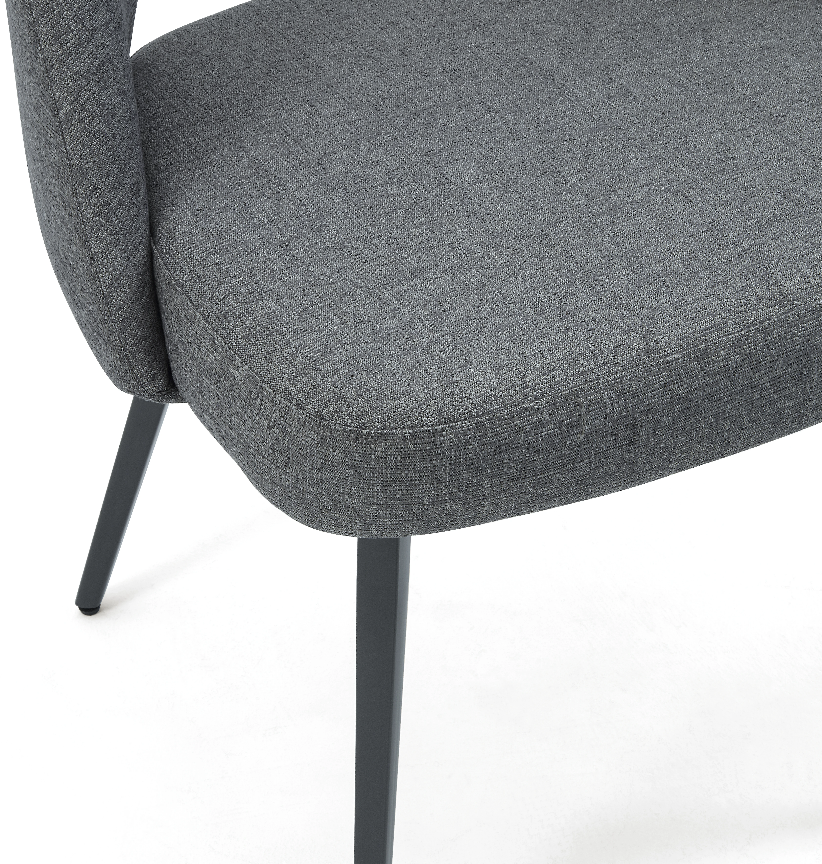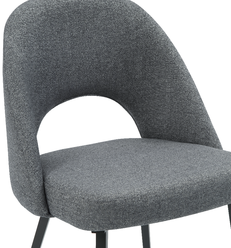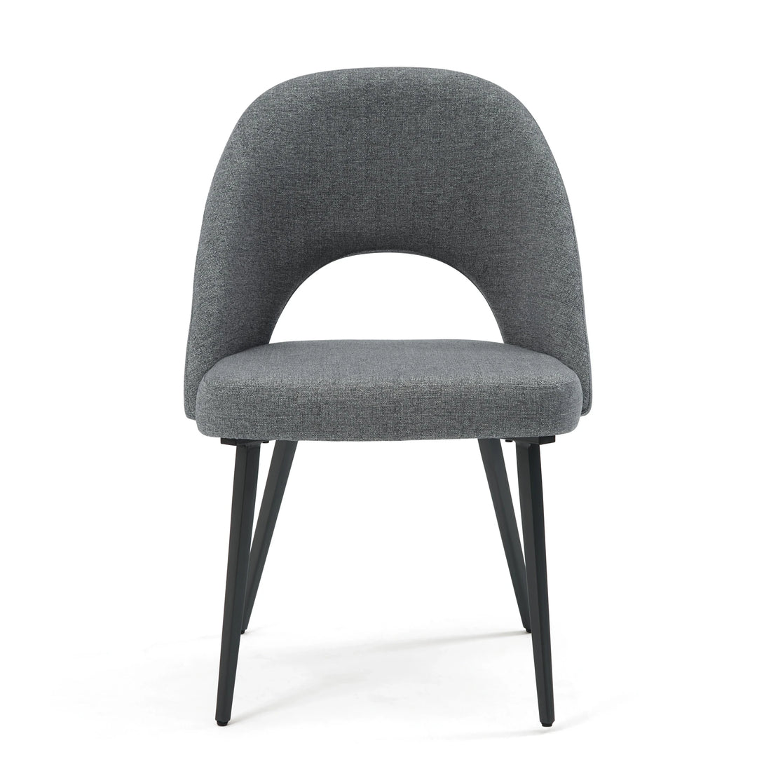 This modern dining chair combines simplicity and functionality with a dark gray fabric seat and backrest for comfort and durability. Its sleek black metal frame and legs offer sturdy support in a minimalist design. Perfect for dining rooms, living rooms, or studies, it adds contemporary style to any space.