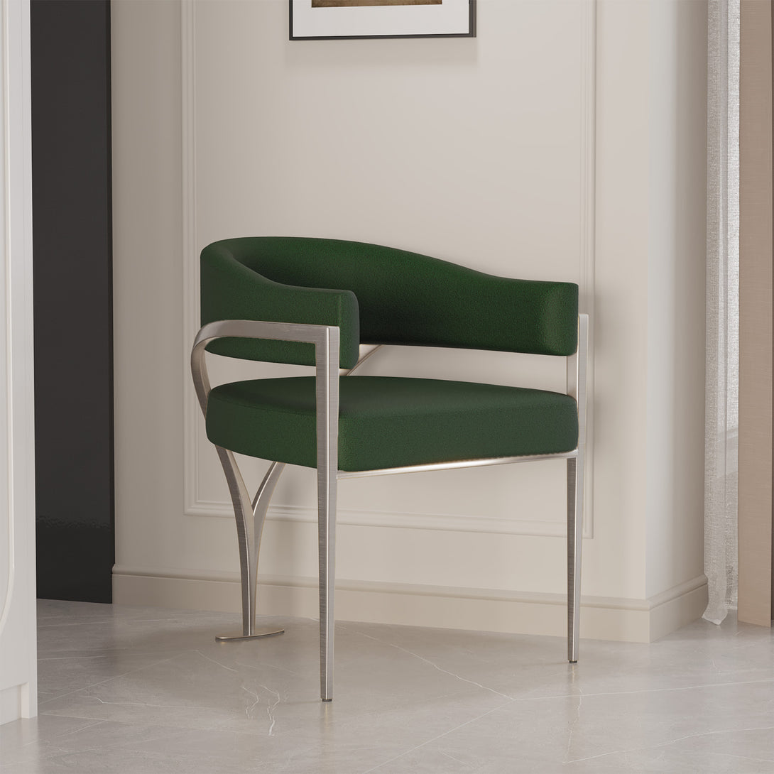 This modern dining chair combines simplicity and functionality with a dark gray fabric seat and backrest for comfort and durability. Its sleek metal frame and legs provide sturdy support in a minimalist design. Perfect for dining rooms, living spaces, or studies, this chair adds contemporary style and coziness to any setting.