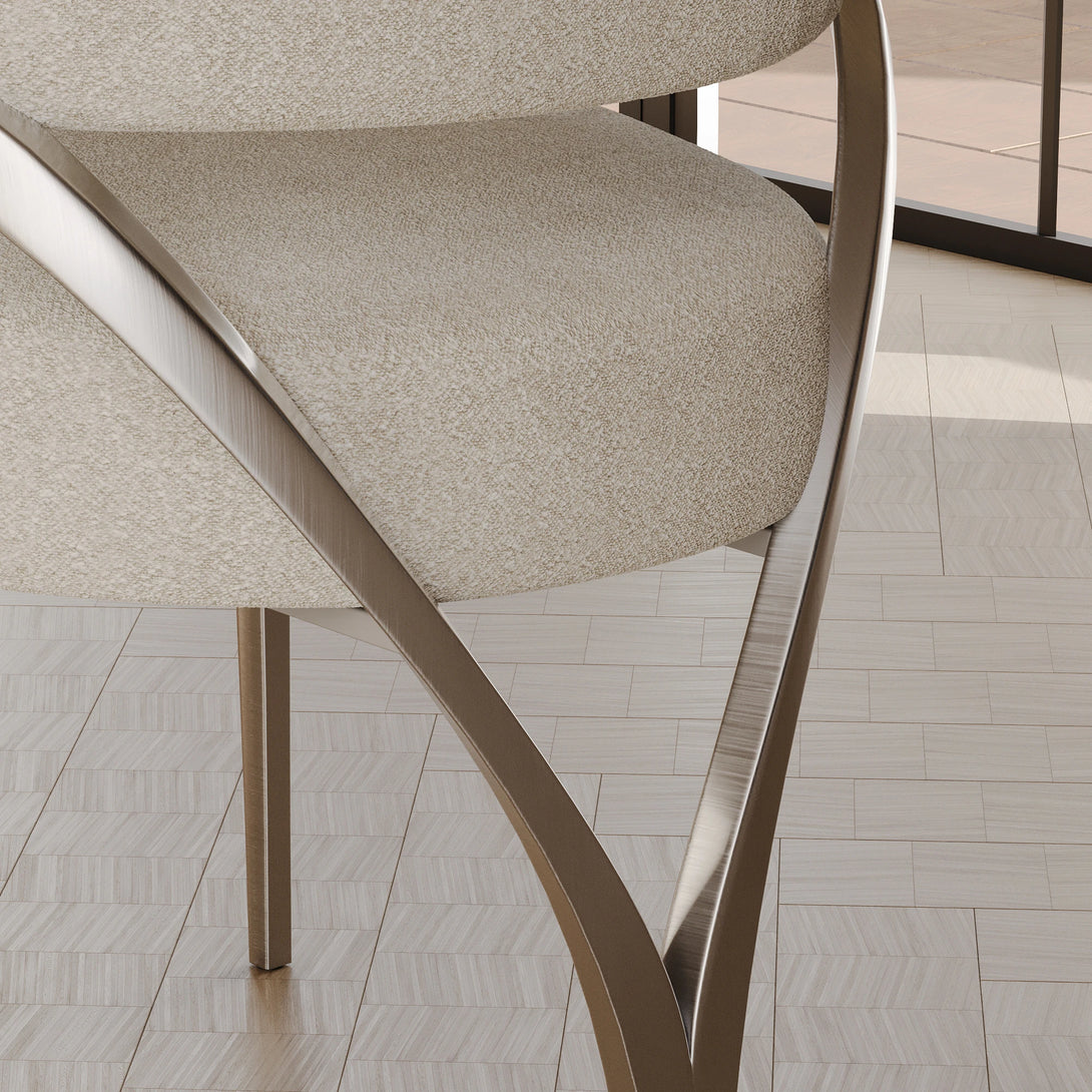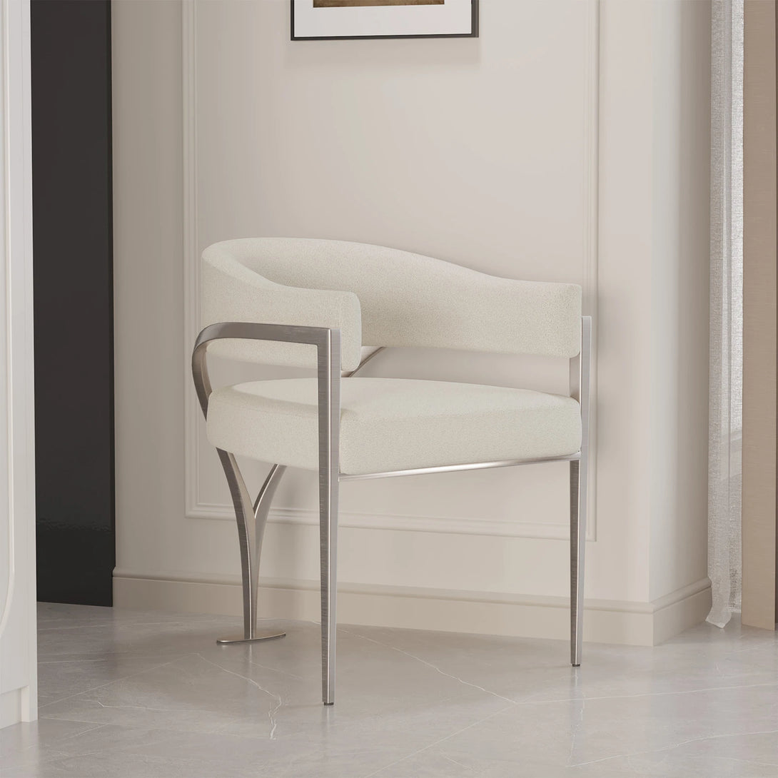 This modern dining chair combines simplicity and functionality with a dark gray fabric seat and backrest for comfort and durability. Its sleek metal frame and legs provide sturdy support in a minimalist design. Perfect for dining rooms, living spaces, or studies, this chair adds contemporary style and coziness to any setting.
