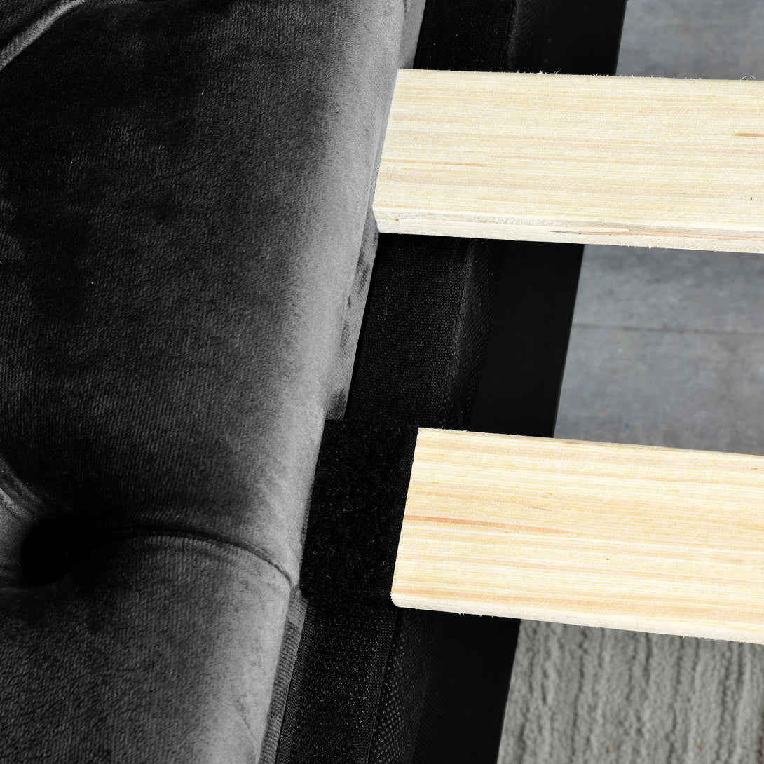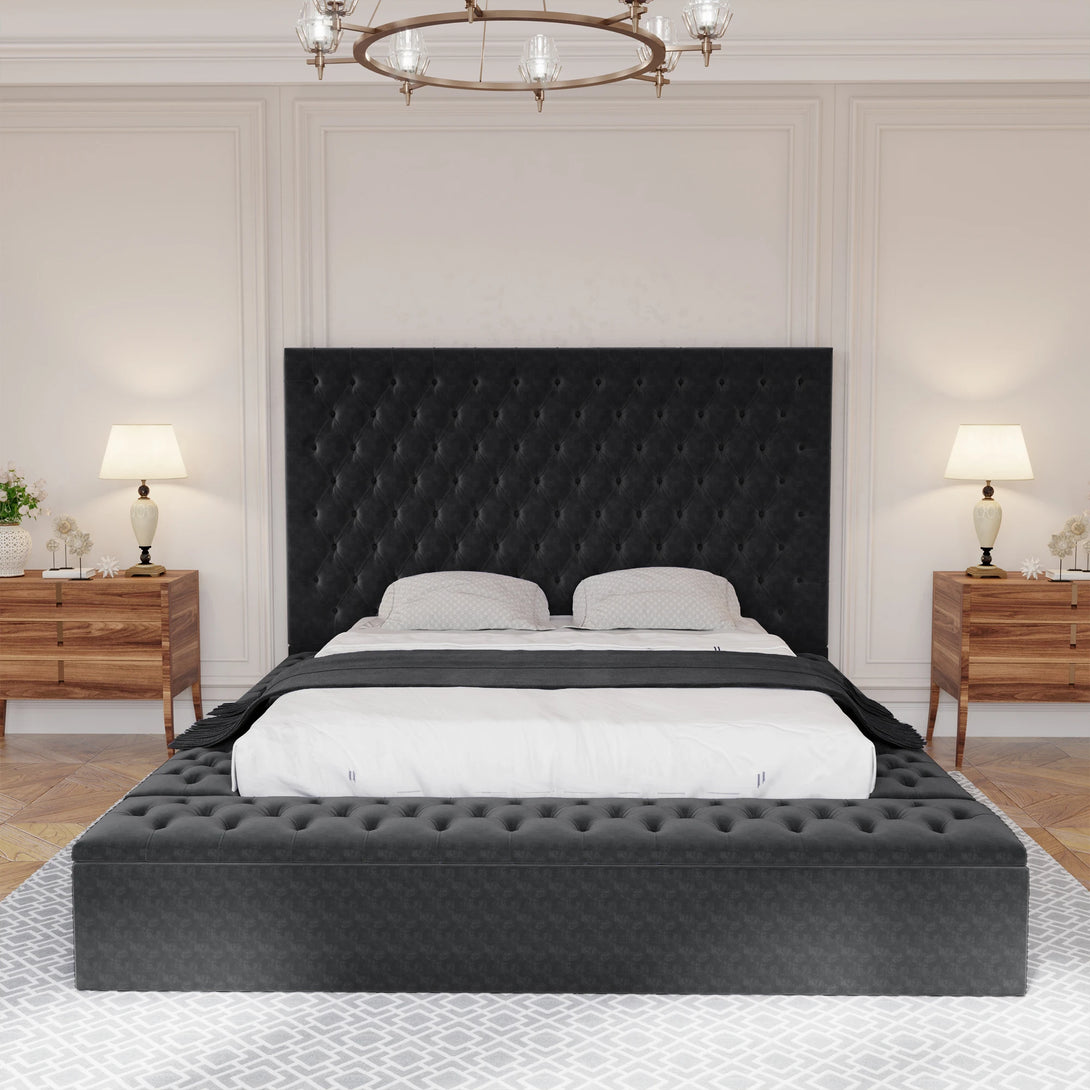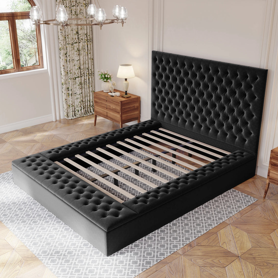 Crafted with a sturdy frame and upholstered in high-quality blue velvet, this bed is filled with high-density sponge for comfort. The tufted headboard and footboard enhance aesthetics and support, making it ideal for master bedrooms, guest rooms, or hotels.