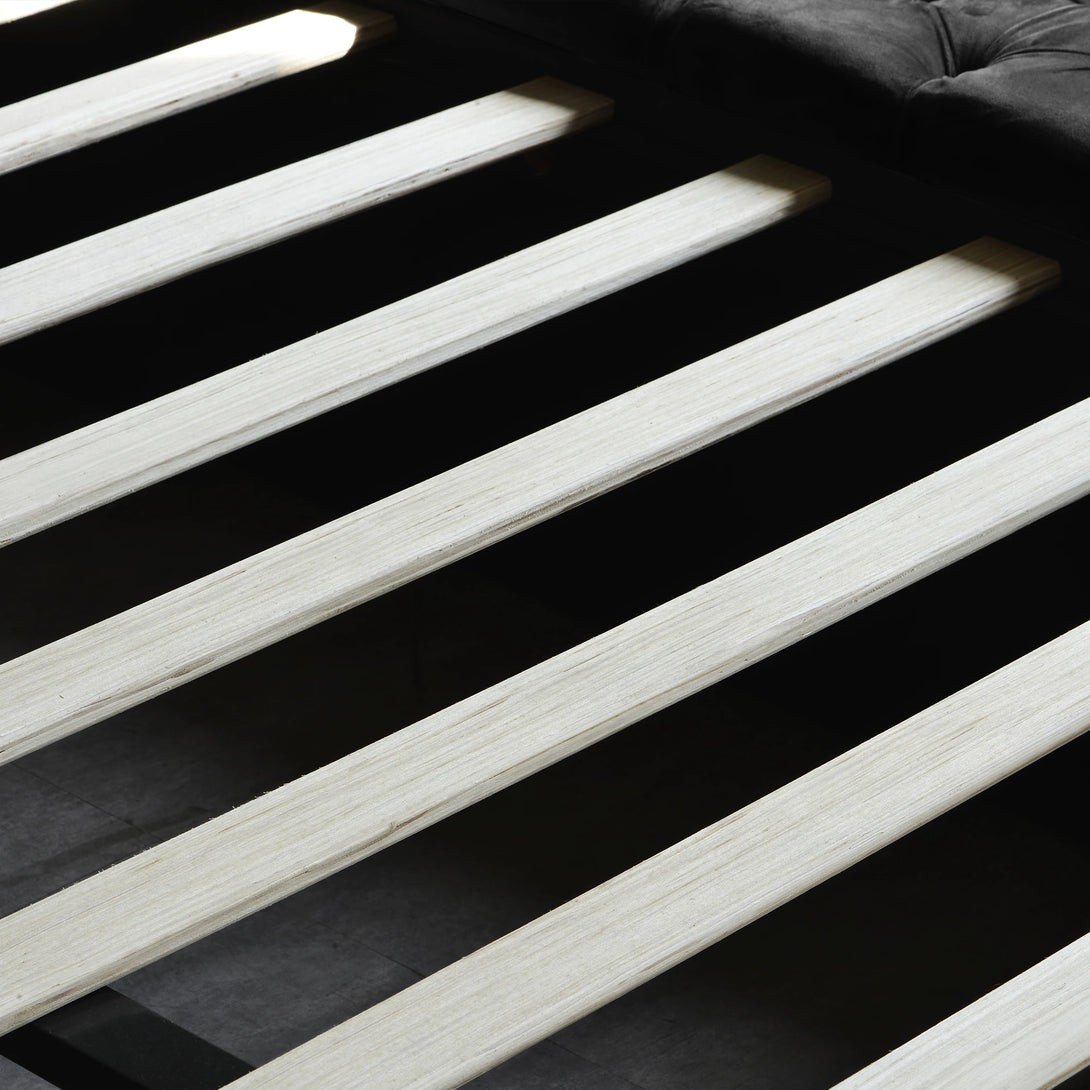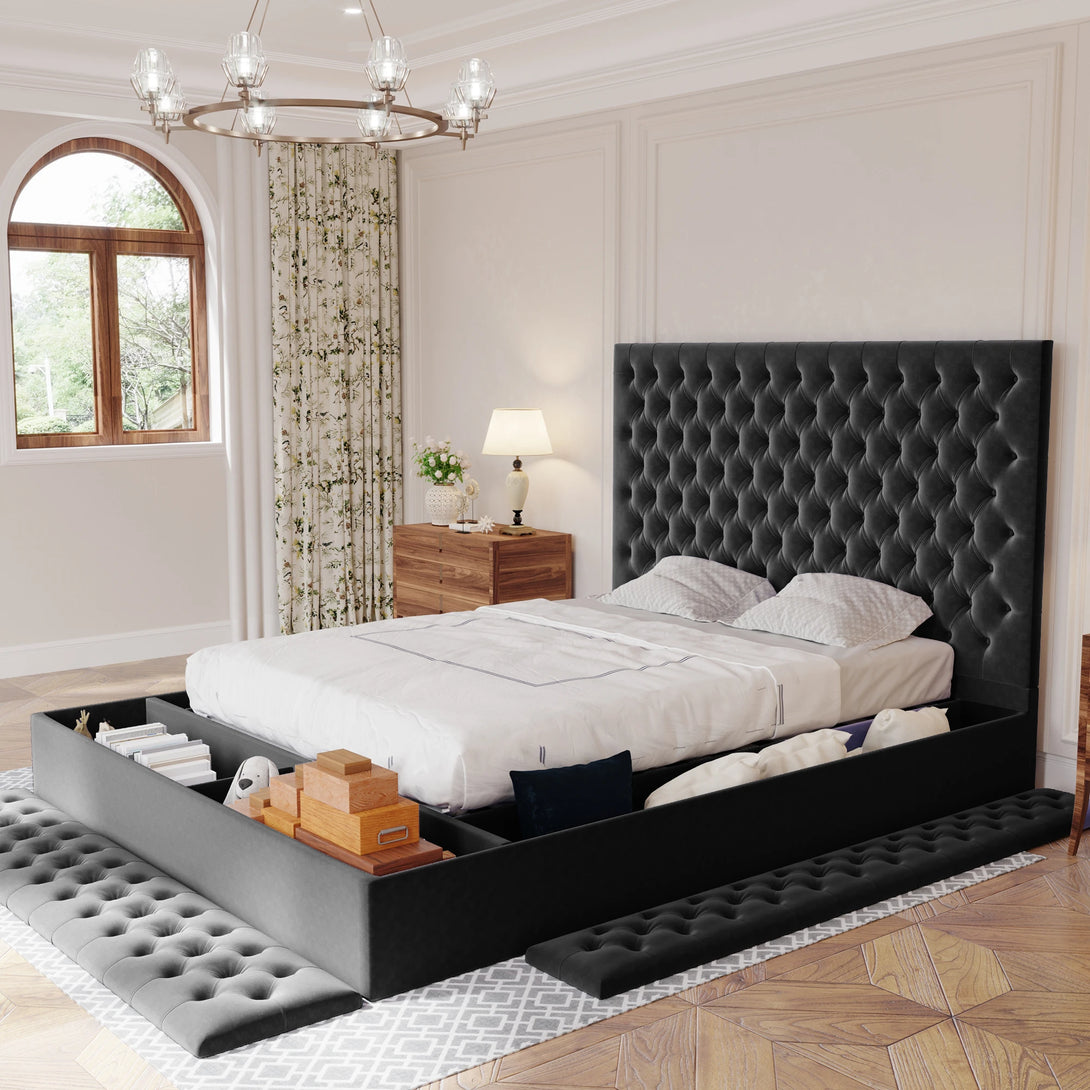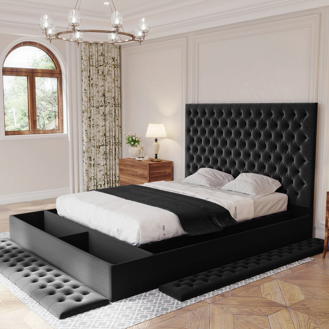 Crafted with a sturdy frame and upholstered in high-quality blue velvet, this bed is filled with high-density sponge for comfort. The tufted headboard and footboard enhance aesthetics and support, making it ideal for master bedrooms, guest rooms, or hotels.