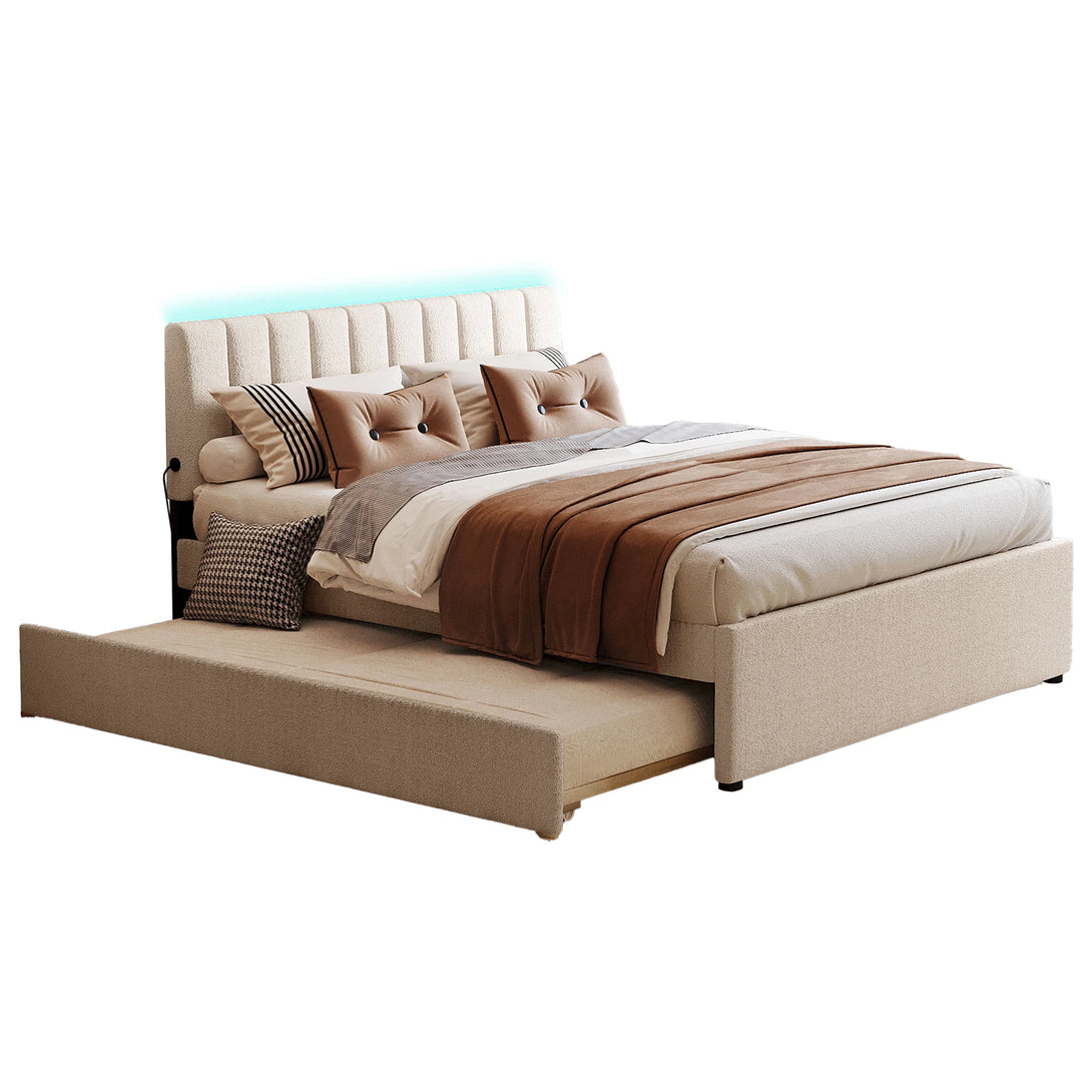 • Upholstered Bed with Trundle Under Bed Queen Size