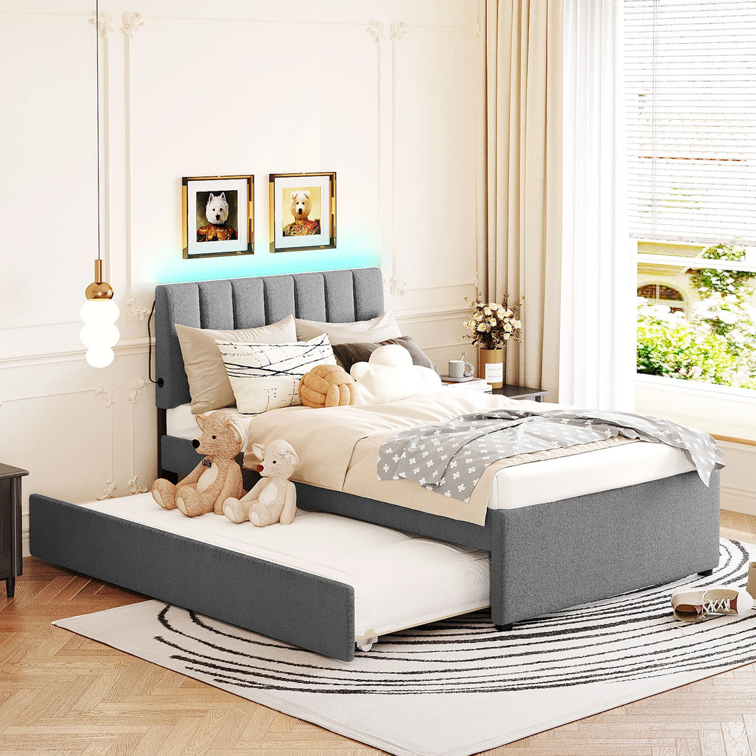 • Upholstered Bed with Trundle Under Bed Twin Size