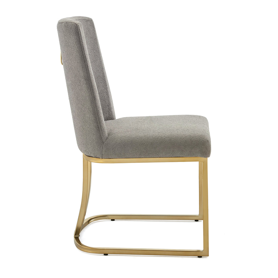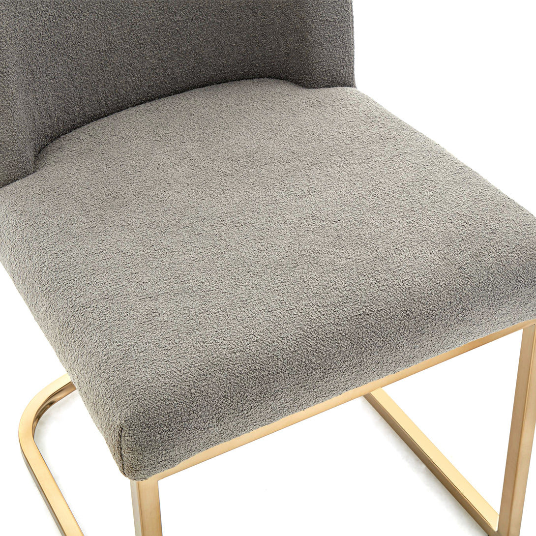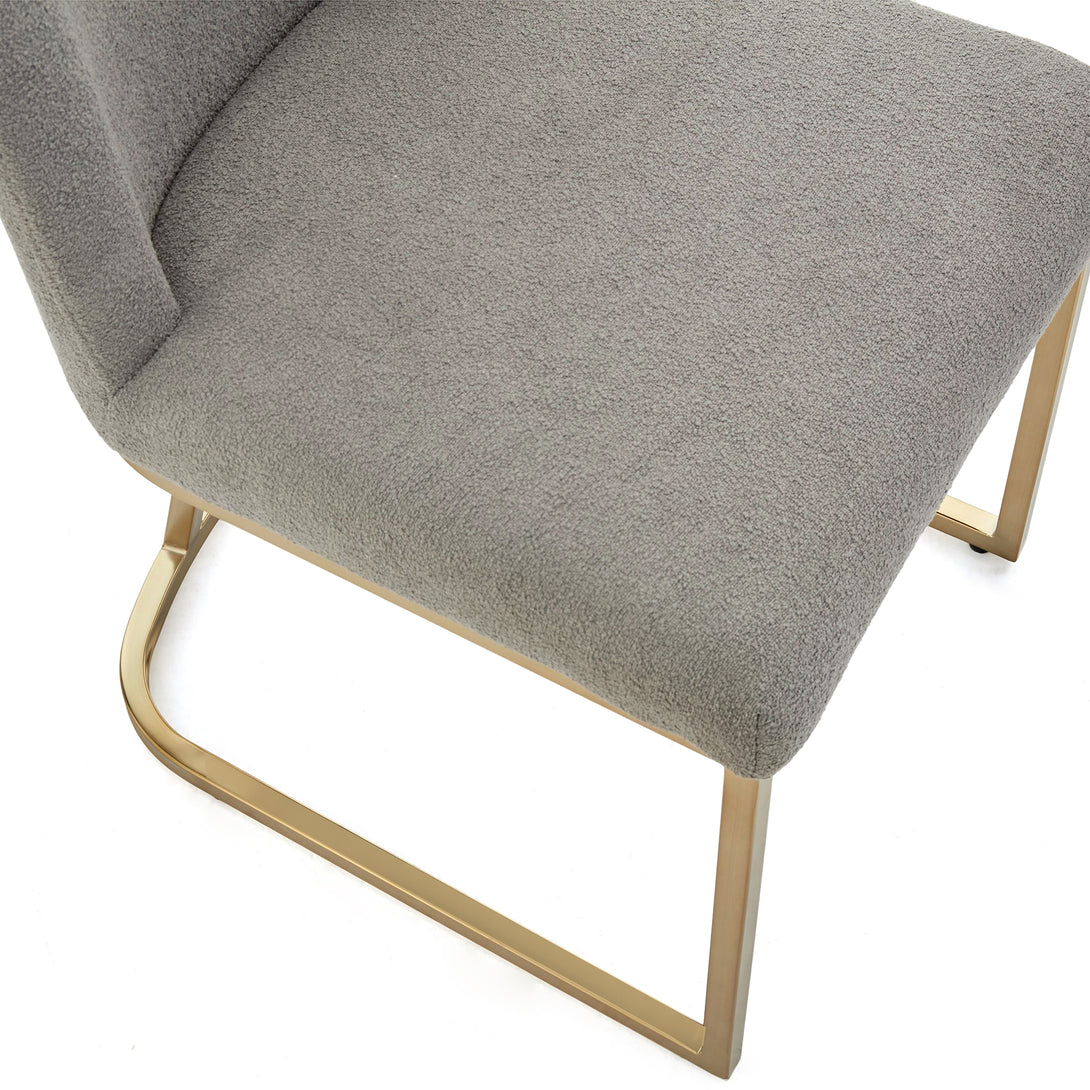 This modern dining chair combines sleek design with comfort. Featuring a gray fabric seat and backrest for a cozy feel, it includes soft round fabric armrest ends for added elegance. The sturdy metal frame ensures durability, making it perfect for dining rooms, studies, or bedrooms. Its minimalist style enhances any contemporary space.