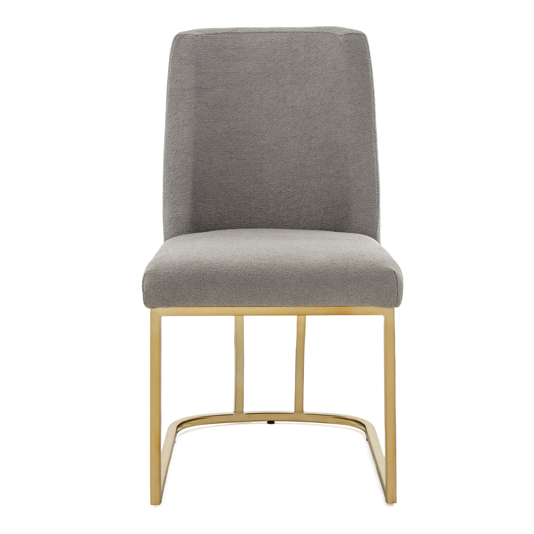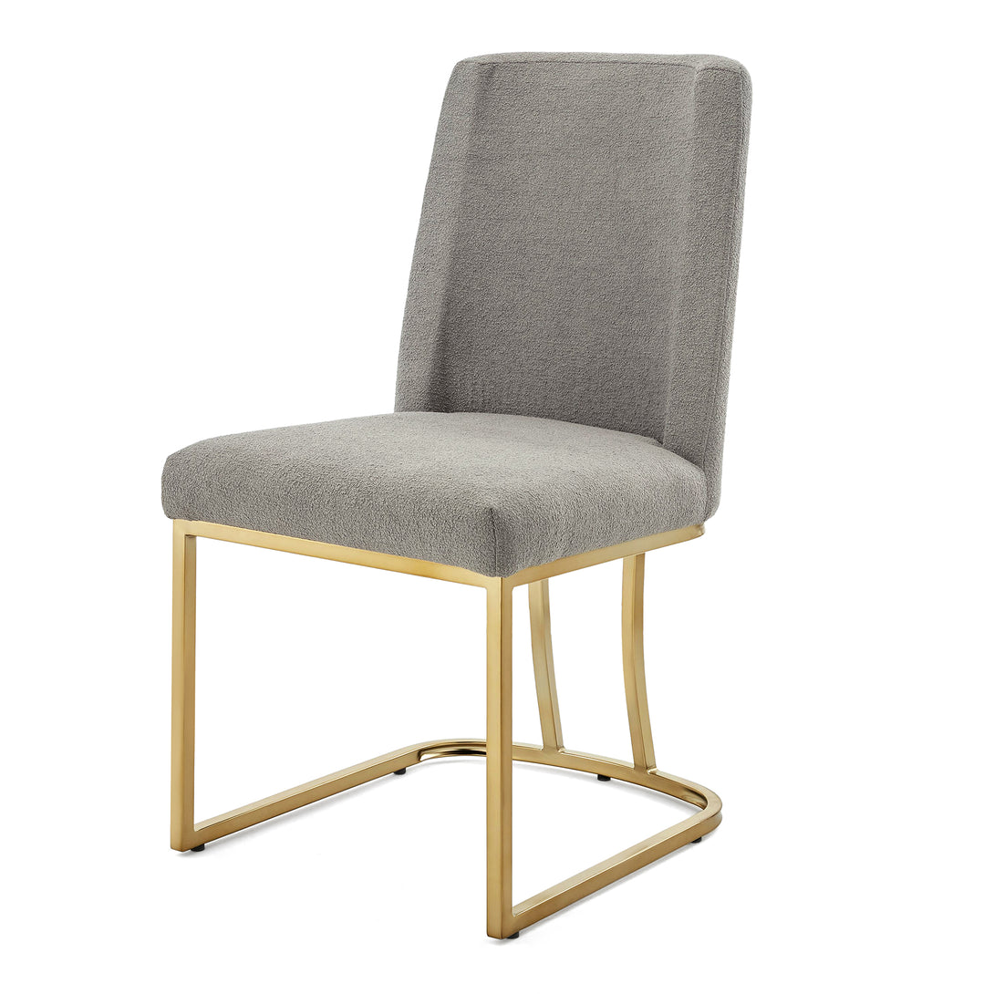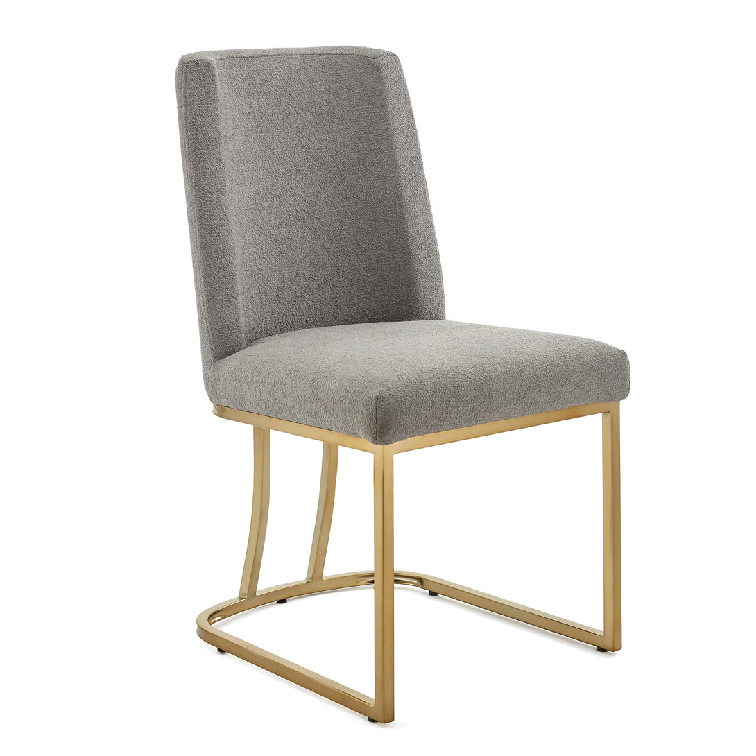 This modern dining chair combines sleek design with comfort. Featuring a gray fabric seat and backrest for a cozy feel, it includes soft round fabric armrest ends for added elegance. The sturdy metal frame ensures durability, making it perfect for dining rooms, studies, or bedrooms. Its minimalist style enhances any contemporary space.