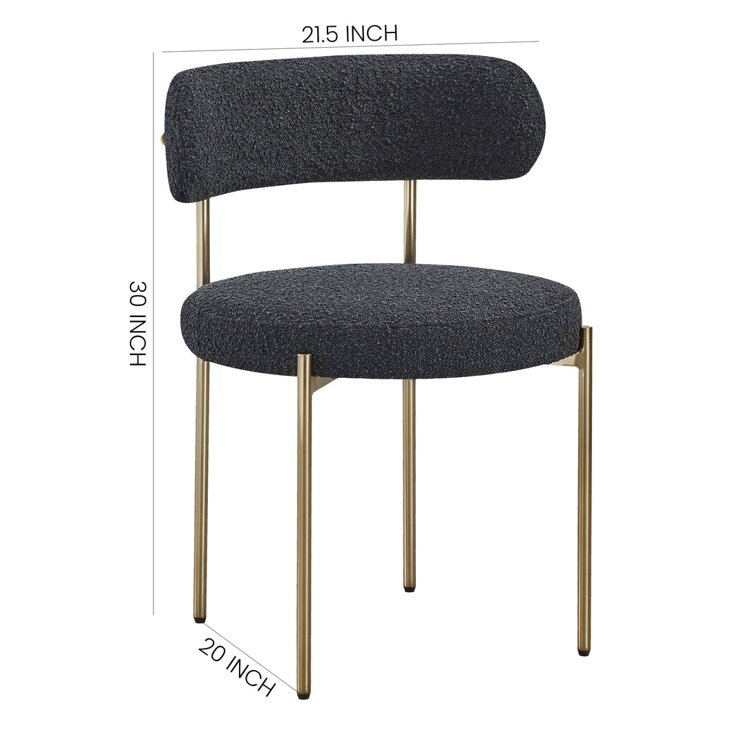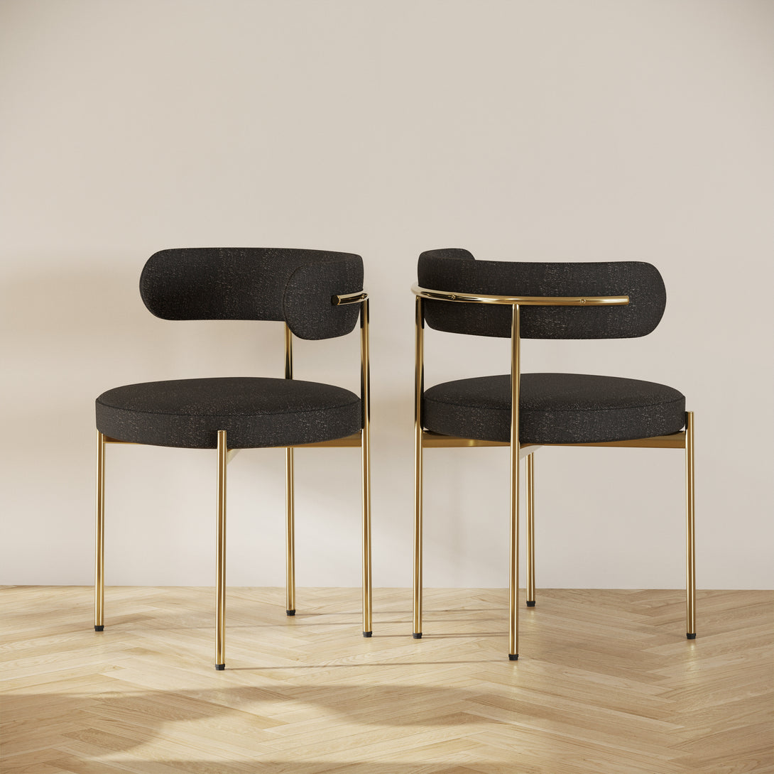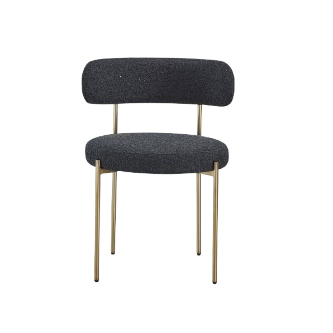 This modern chair combines comfort and style with a fabric seat and backrest, offering a textured, cozy feel. The sleek black metal frame adds a contemporary touch, perfect for dining rooms, living spaces, or offices. Its minimalist design enhances any decor with simplicity and modernity.