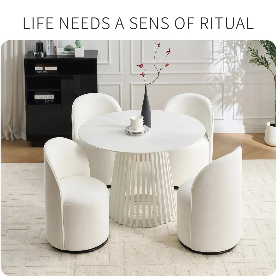 Ideal For:Compact dining rooms, bedrooms, or living areas. Features a 360° swivel and space-saving barrel design for modern, small-space decor.