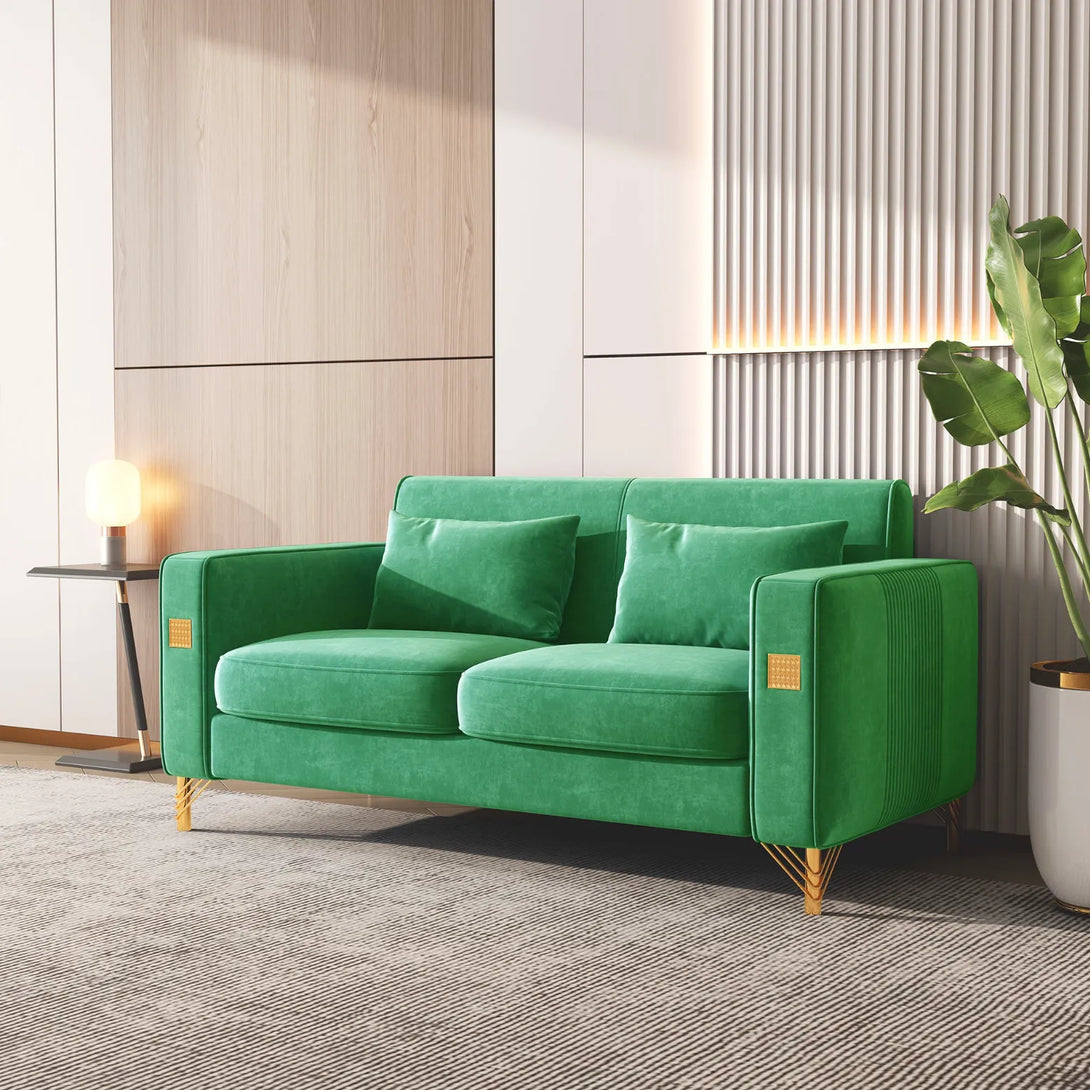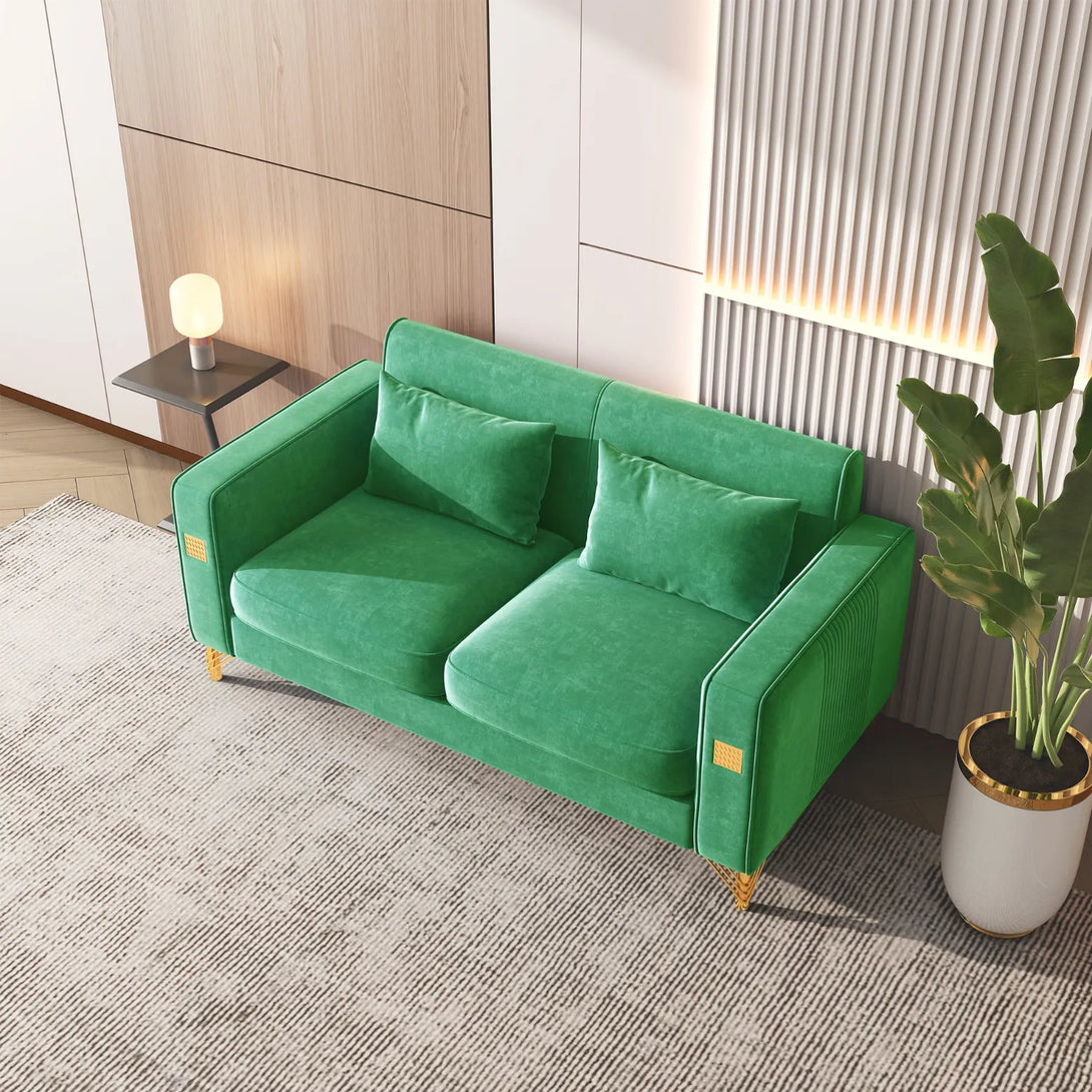 Add elegance and comfort to your home with this luxurious velvet sofa or loveseat. Upholstered in premium polyester velvet and available in six stunning colors, it combines sophistication with everyday comfort. A solid wood frame ensures durability, while high-density foam and pocket springs provide lasting support. Finished with sleek gold metal legs, this piece is a stylish focal point for any living room or office.