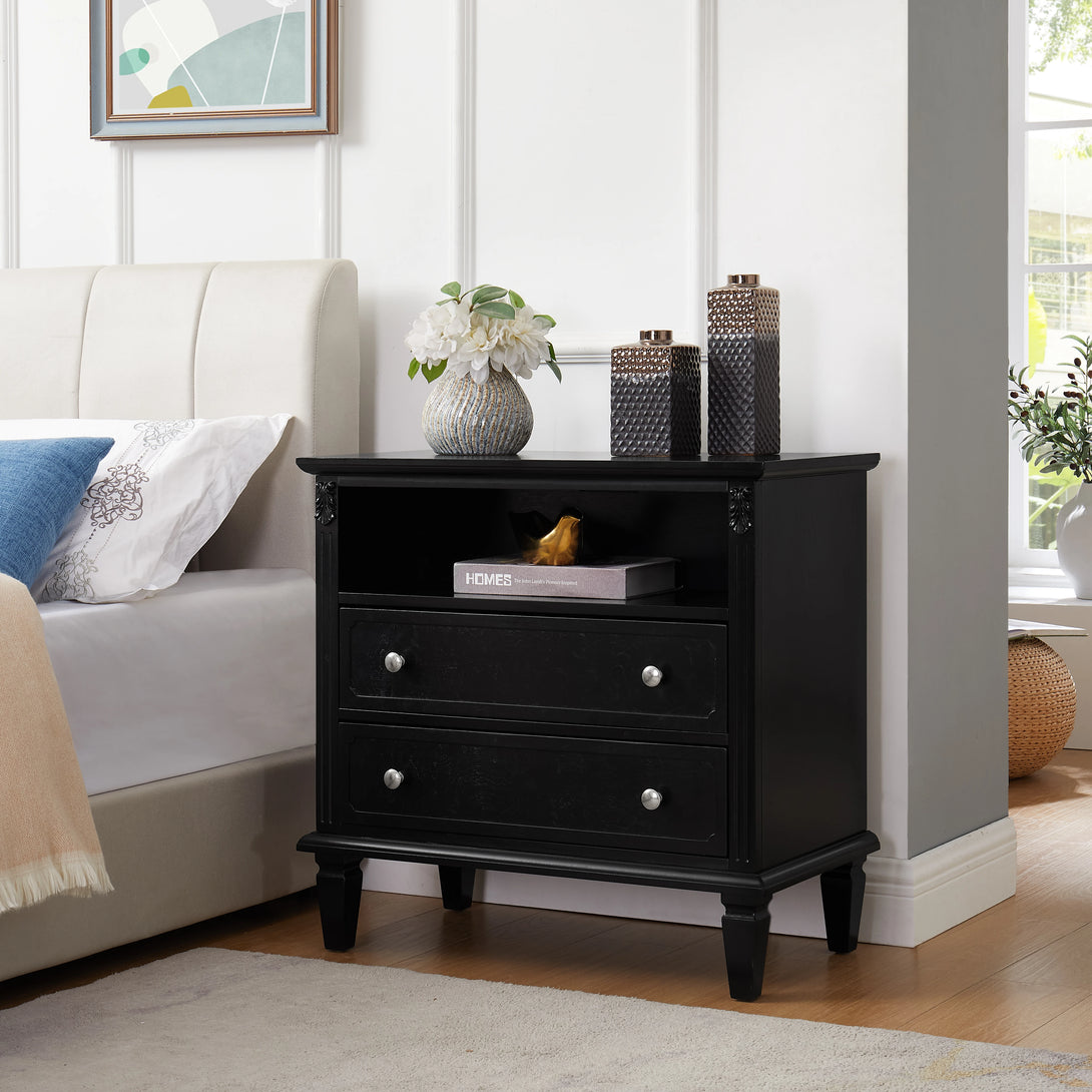 Designed with 2 drawers and 1 open shelf, it offers plenty of room for organizing your essentials. Keep frequently used items like alarm clocks, phones, or magazines within easy reach.