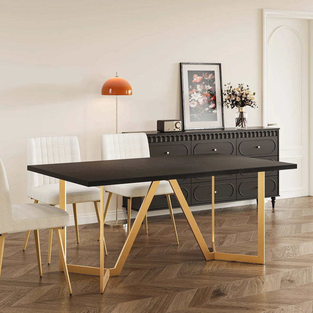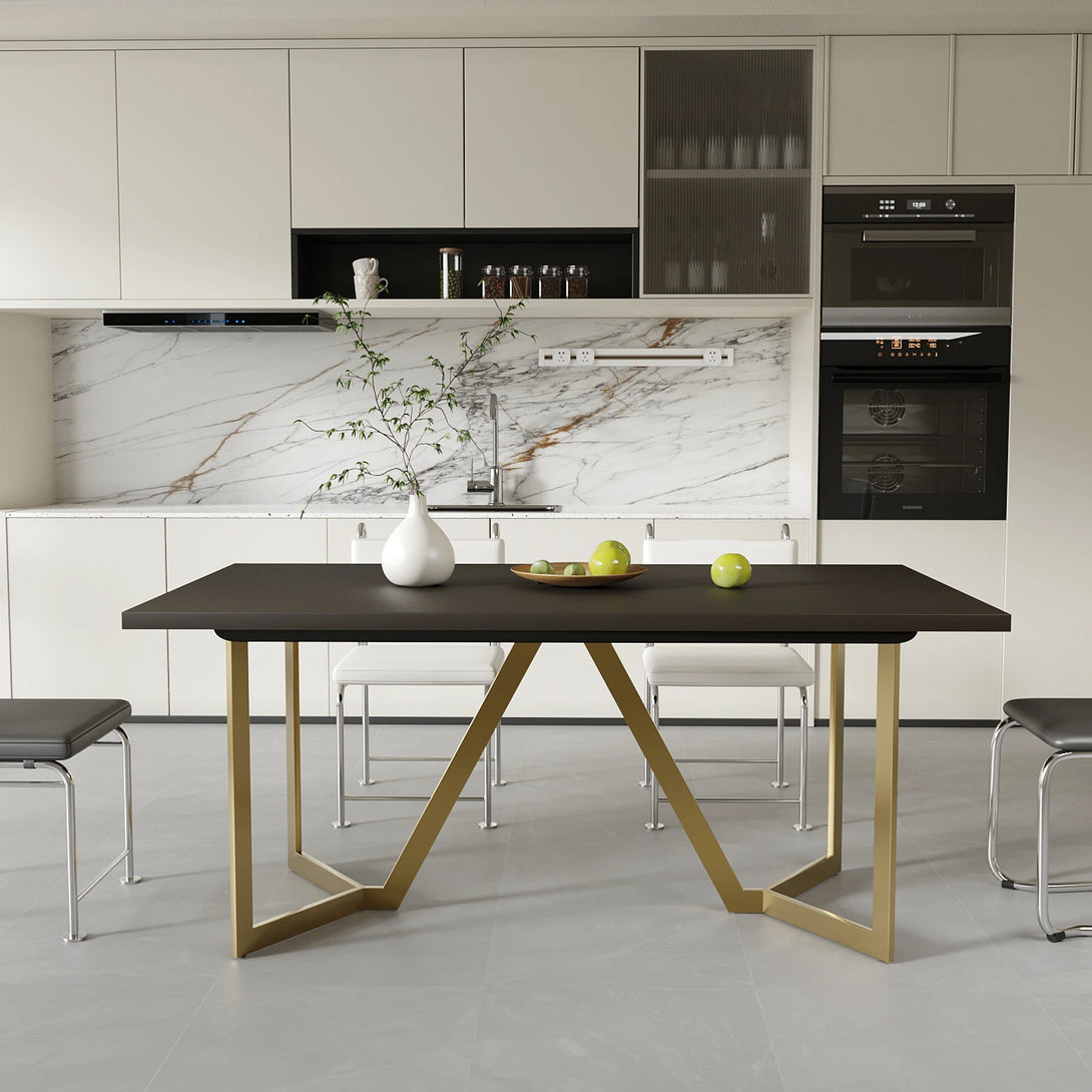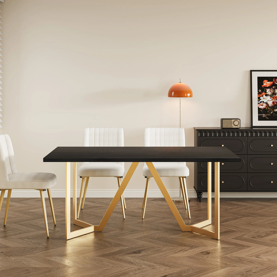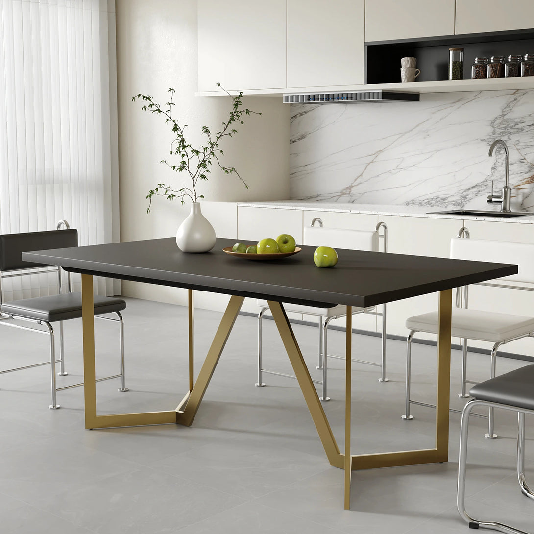Featuring a sleek black tabletop that is smooth and easy to clean, paired with gold-colored crisscross metal legs for stable support and artistic flair. Ideal for dining or living rooms, this table adds both modern elegance and a luxurious touch to any space.